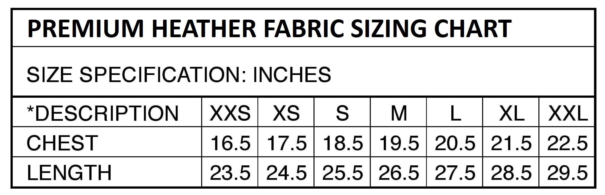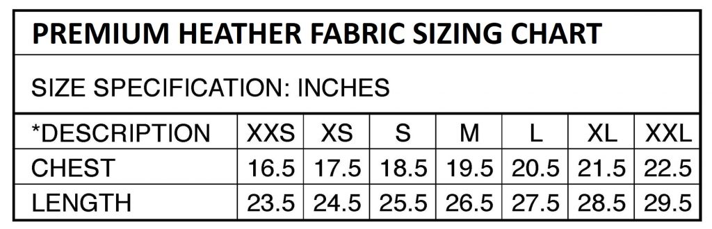 canberra Sizing Chart